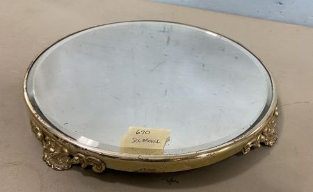 Silver Plate 12"dia. Mirror Plateau, light tarnish. Location Right Metal Shelves Silver Plate 12"dia. Mirror Plateau, light tarnish. Location Right Metal Shelves