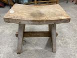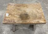 Primitive Style Hand Crafted Stool, distressed painted, 17"h., 18"w. Location: 6th Row Primitive Style Hand Crafted Stool, distressed painted, 17"h., 18"w. Location: 6th Row