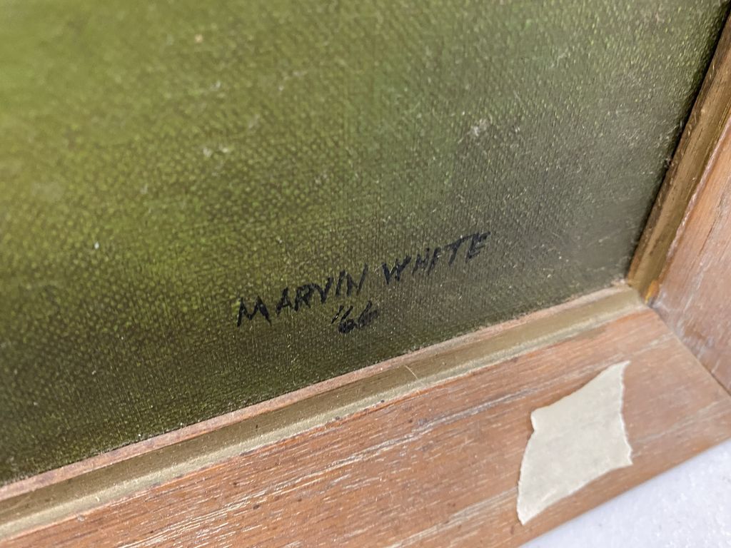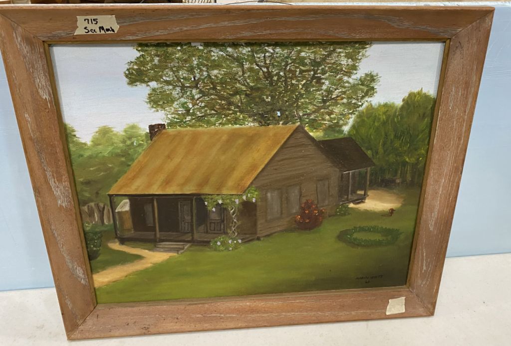 Marylin White 1966 Farm House Painting, on board, framed, 20"h., 23"w. Location Left Office Marylin White 1966 Farm House Painting, on board, framed, 20"h., 23"w. Location Left Office