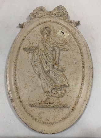 Heavy Iron Wall Plaque, lady, 20"h. Location Left Metal Shelves Heavy Iron Wall Plaque, lady, 20"h. Location Left Metal Shelves