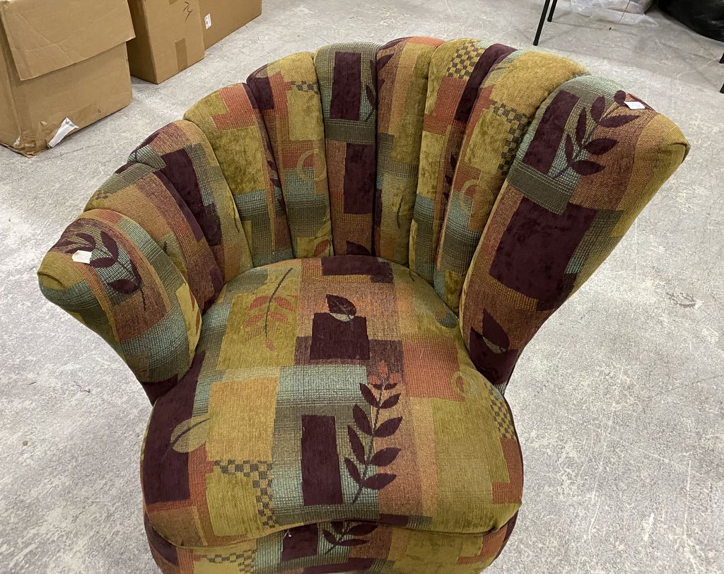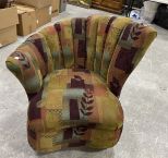 Contemporary Upholstered Chair, multi color, good condition. Location Front of 1st Row Contemporary Upholstered Chair, multi color, good condition. Location Front of 1st Row