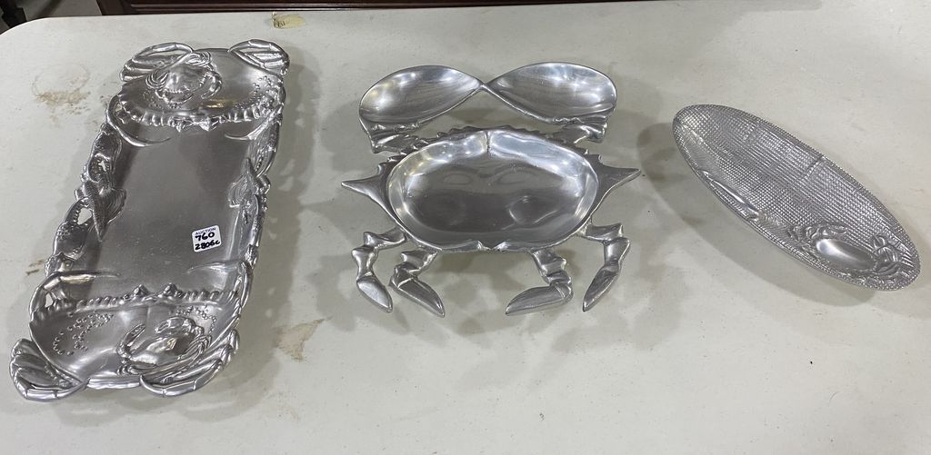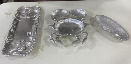 760 Crab Aluminum Serving Chip and Dip Tray, Lobster and Crab Serving Tray, and Crab & Seashell Butter Dish or Tray