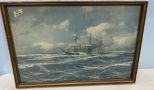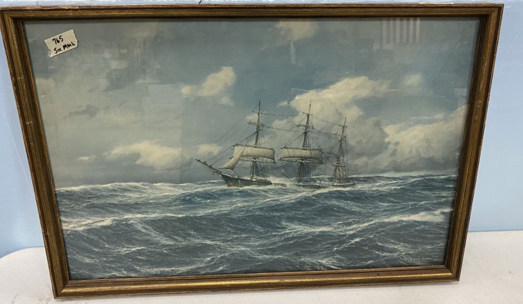 Framed Ship Print, glassed, 20"h., 28"w. Location Left Office Framed Ship Print, glassed, 20"h., 28"w. Location Left Office