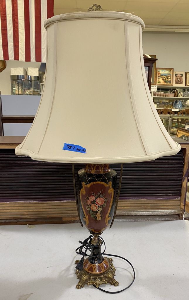 French Style Modern Urn Lamp, black and gold, with shade, 33"h. French Style Modern Urn Lamp, black and gold, with shade, 33"h.
