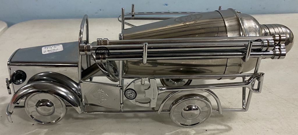 Vintage Goldinger Fire Truck Cocktail Set. Includes Ice Cube Tong Ladder, 4 Stir Sticks, Bottle Opener, Cocktail Shaker, and Bucket. 14" x 6" x 6". Location Left Metal Shelves Vintage Goldinger Fire Truck Cocktail Set. Includes Ice Cube Tong Ladder, 4 Stir Sticks, Bottle Opener, Cocktail Shaker, and Bucket. 14" x 6" x 6". Location Left Metal Shelves