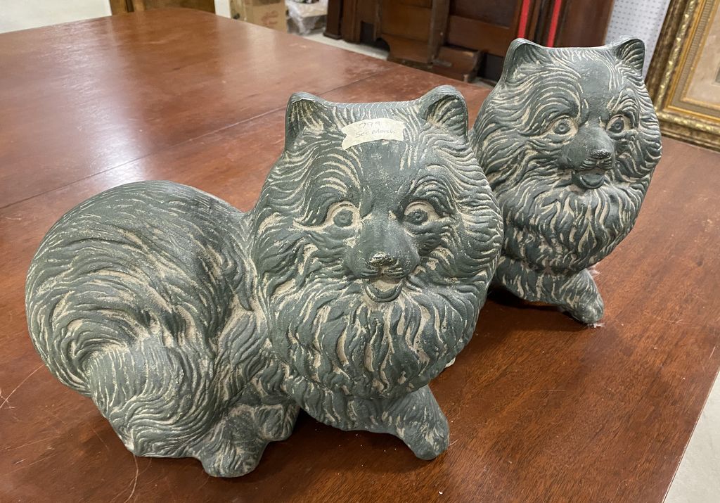 Pair of Pottery Dog Statues, 12"h., 13"w. Pair of Pottery Dog Statues, 12"h., 13"w.