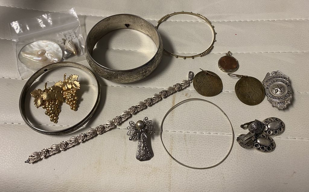 Silver plate bracelets, decorative earrings, bracelet, angel pin, mother of pearl. Silver plate bracelets, decorative earrings, bracelet, angel pin, mother of pearl.