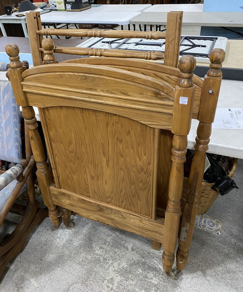 Vintage Oak Baby Crib, sides, and metal base, should include all pieces needed. Vintage Oak Baby Crib, sides, and metal base, should include all pieces needed.