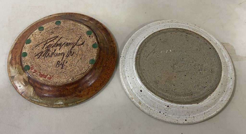 2 Signed Decorative Ceramic Plates. 1 Signed Pickenpaugh Pottery 84', 1 Signed Springwood Pottery. 7.5" dia. Location Left Metal Shelves 2 Signed Decorative Ceramic Plates. 1 Signed Pickenpaugh Pottery 84', 1 Signed Springwood Pottery. 7.5" dia. Location Left Metal Shelves
