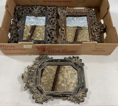 881 Three Ornate Plastic Smoke Glass Mirrors