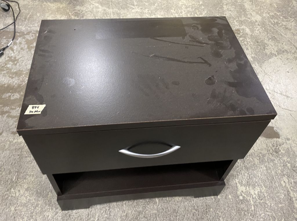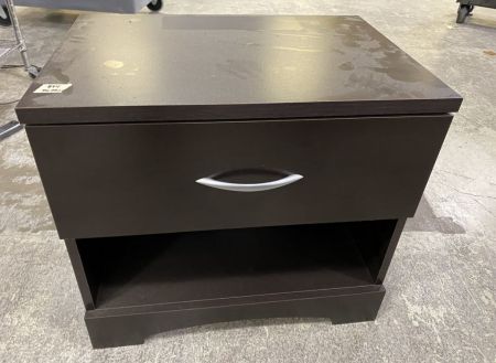 Modern Pressed Wood Night Stand, single drawer, 20"h., 23"w. Location Left Office Modern Pressed Wood Night Stand, single drawer, 20"h., 23"w. Location Left Office
