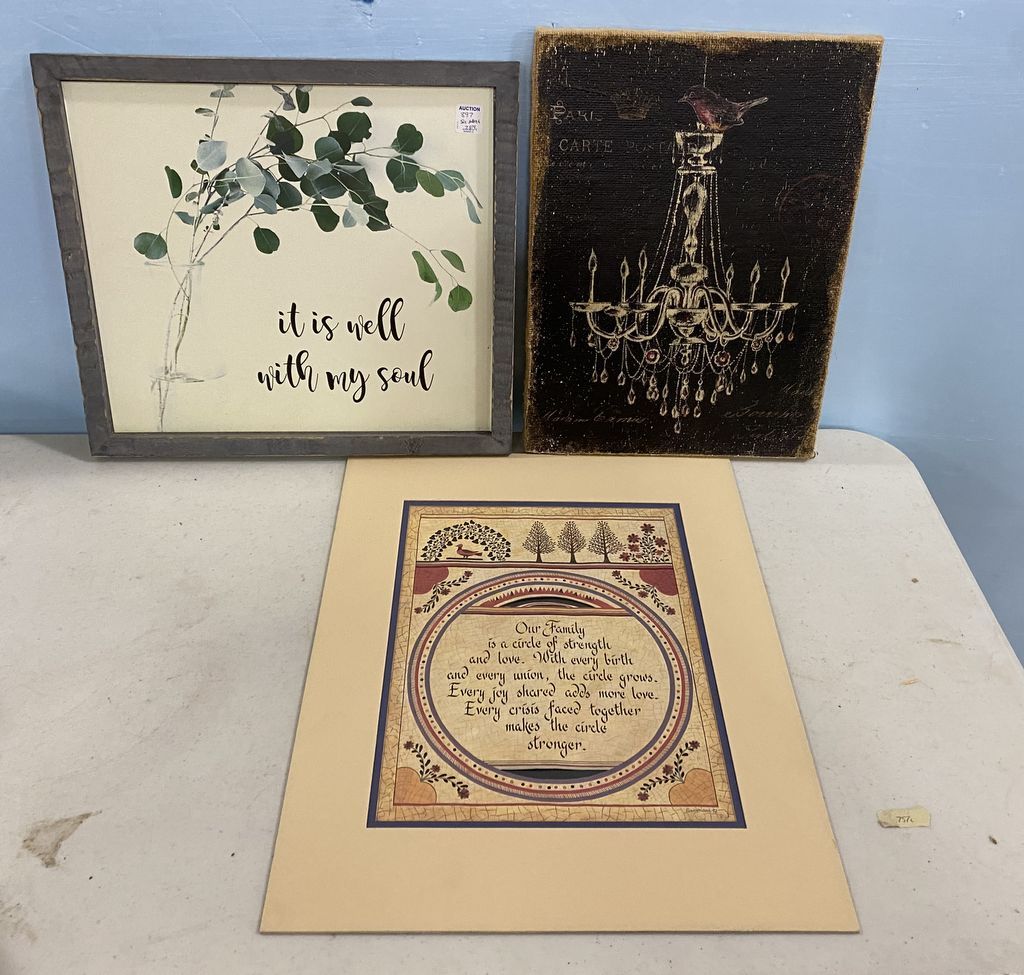 Framed, It is Well, Paris Chandelier burlap, and Our Family. Location Left Metal Shelves Framed, It is Well, Paris Chandelier burlap, and Our Family. Location Left Metal Shelves