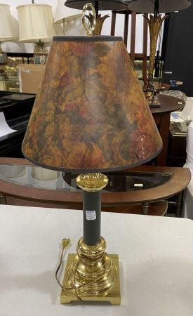 Small Brass Candle Stick Lamp, shade is damaged, 27"h. Small Brass Candle Stick Lamp, shade is damaged, 27"h.