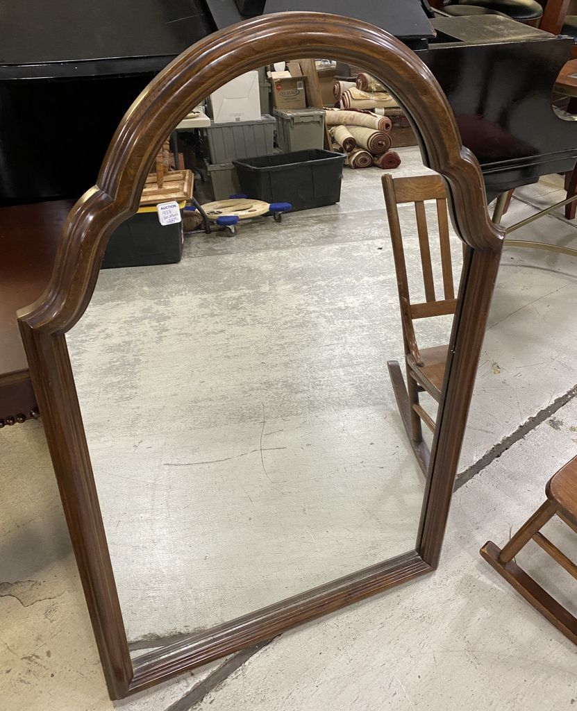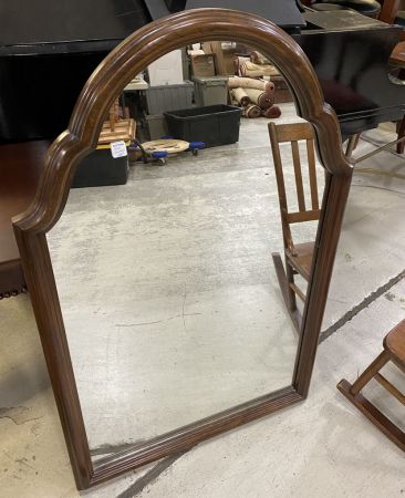 Mahogany Dome Top Wall Mirror, needs hanging wire, 45"h., 29"w. Location: Back Wall Mahogany Dome Top Wall Mirror, needs hanging wire, 45"h., 29"w. Location: Back Wall