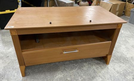 Modern Tv Stand, drawer glide needs repair, 24"h., 44"w., 24"d. Location: 3rd Row Modern Tv Stand, drawer glide needs repair, 24"h., 44"w., 24"d. Location: 3rd Row