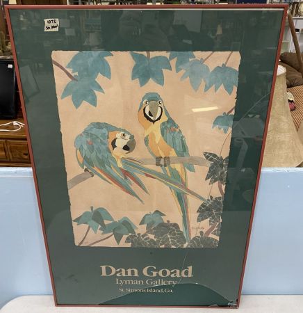 Dan Good Signed Parrot Print, framed, glass cracked, 35"h., 23"w. Location Left Office Dan Good Signed Parrot Print, framed, glass cracked, 35"h., 23"w. Location Left Office