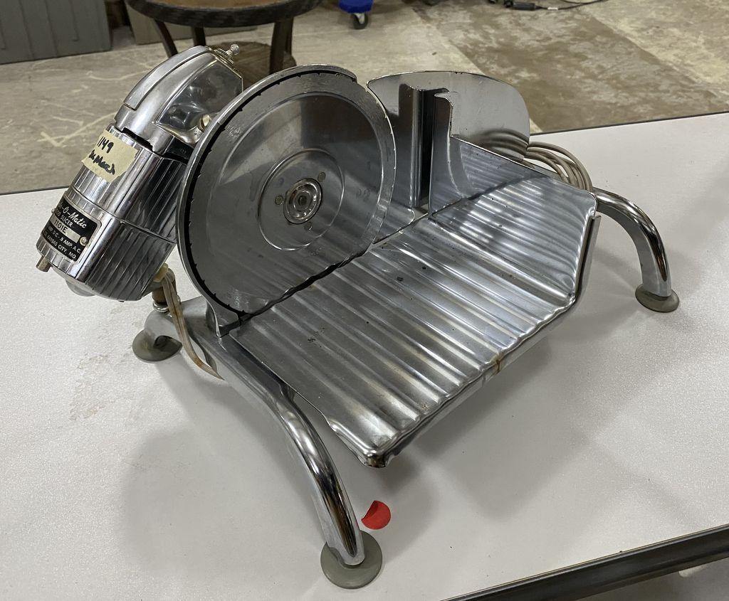 Electr O Matic Food Slicer 1101E, Location Right Metal Shelves Electr O Matic Food Slicer 1101E, Location Right Metal Shelves