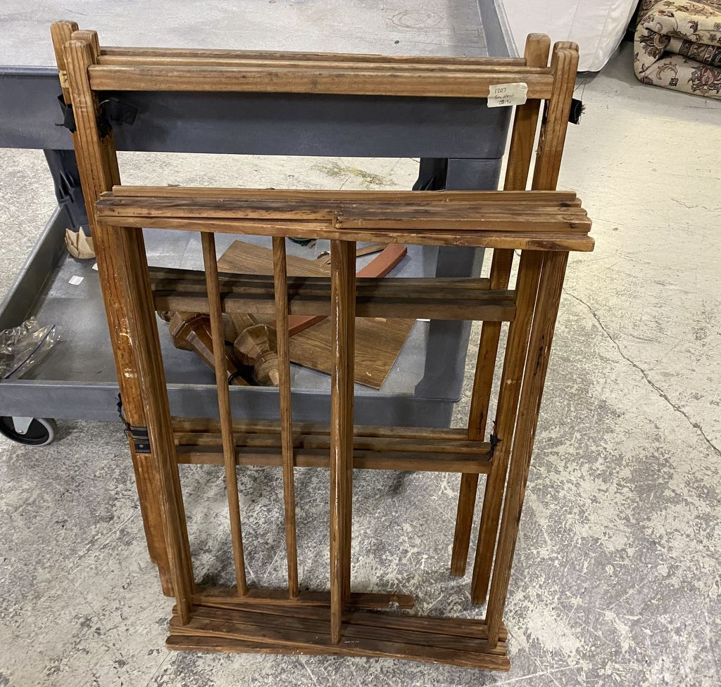 Two Primitive Style Quilt Stands. Location: Back Wall Two Primitive Style Quilt Stands. Location: Back Wall