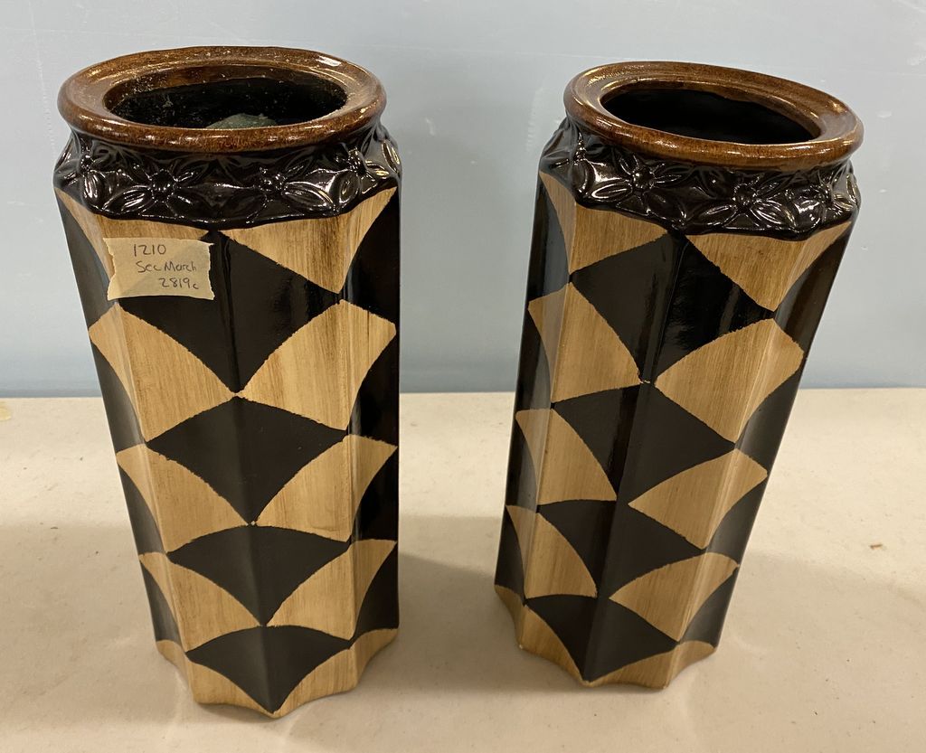 Two Home Accent Ceramic Planters, 12"h. Location Left Metal Shelves Two Home Accent Ceramic Planters, 12"h. Location Left Metal Shelves