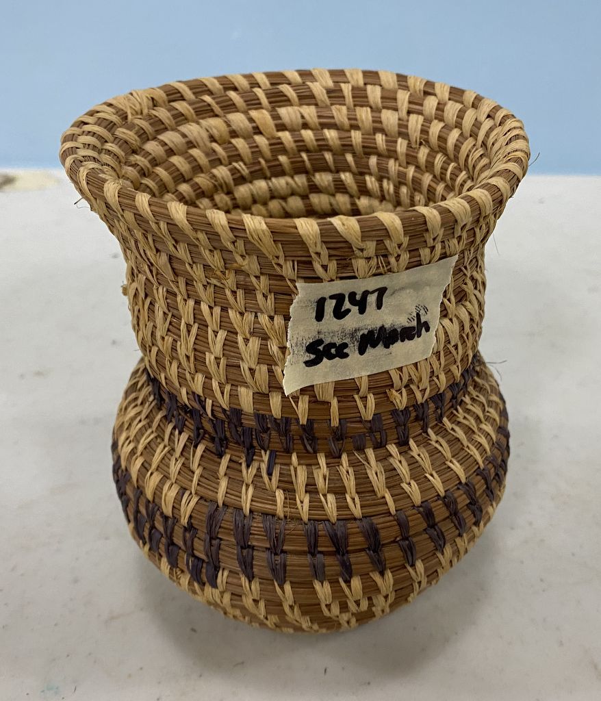 Pine Needle Hand Crafted Vase, 5 1/2"h, Location Left Metal Shelves Pine Needle Hand Crafted Vase, 5 1/2"h, Location Left Metal Shelves