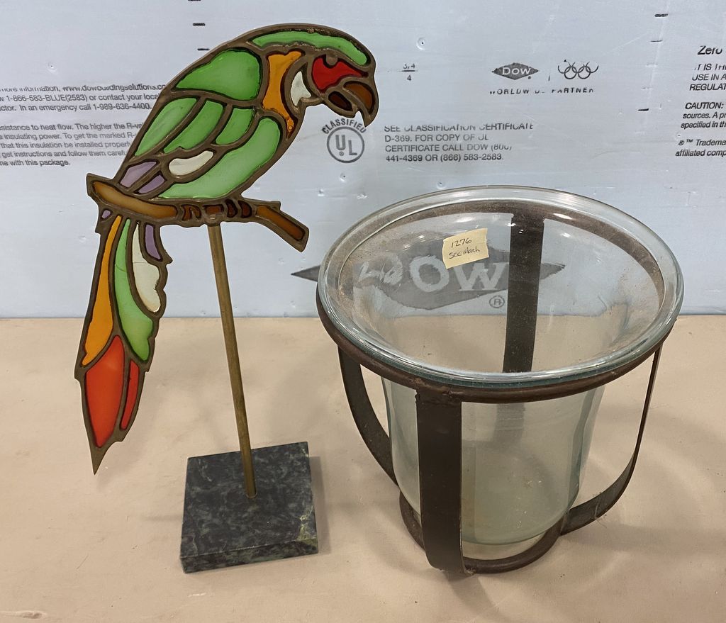Parrot Glass Plaque 16"h and Glass Holder, Location Front of 1st Row Parrot Glass Plaque 16"h and Glass Holder, Location Front of 1st Row
