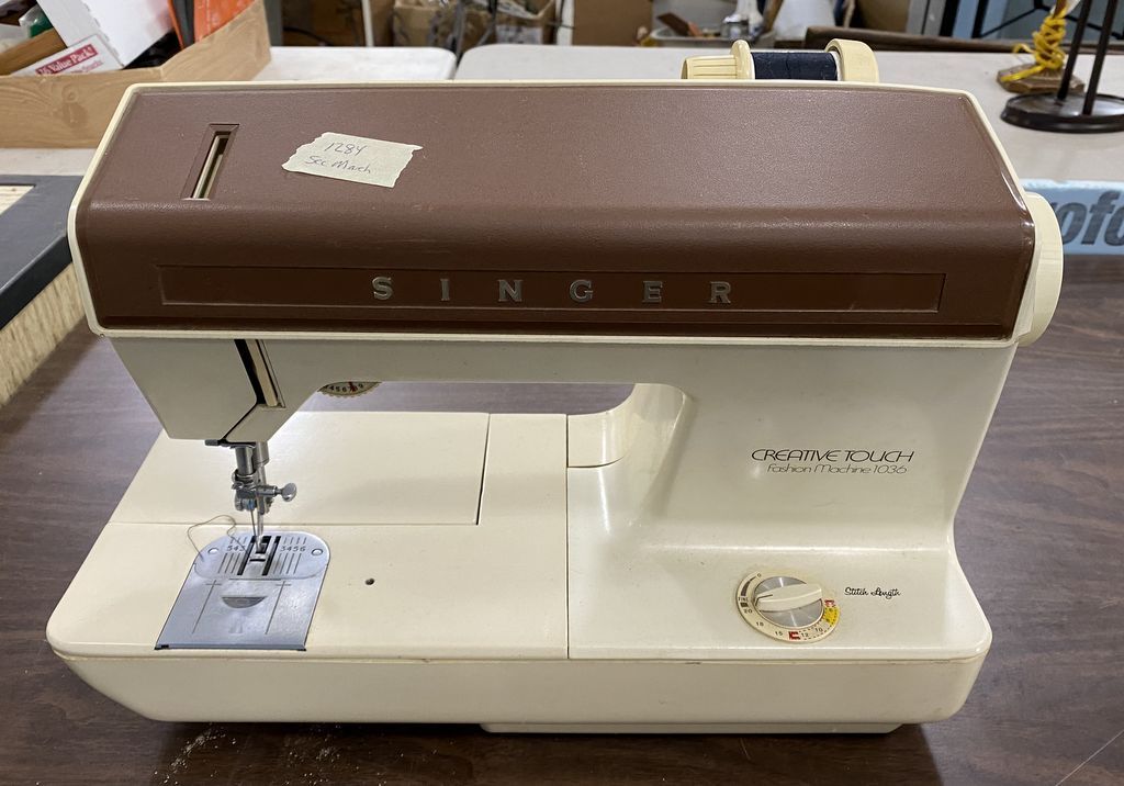 Singer Sewing Machine creative touch. Location Left Metal Shelves Singer Sewing Machine creative touch. Location Left Metal Shelves