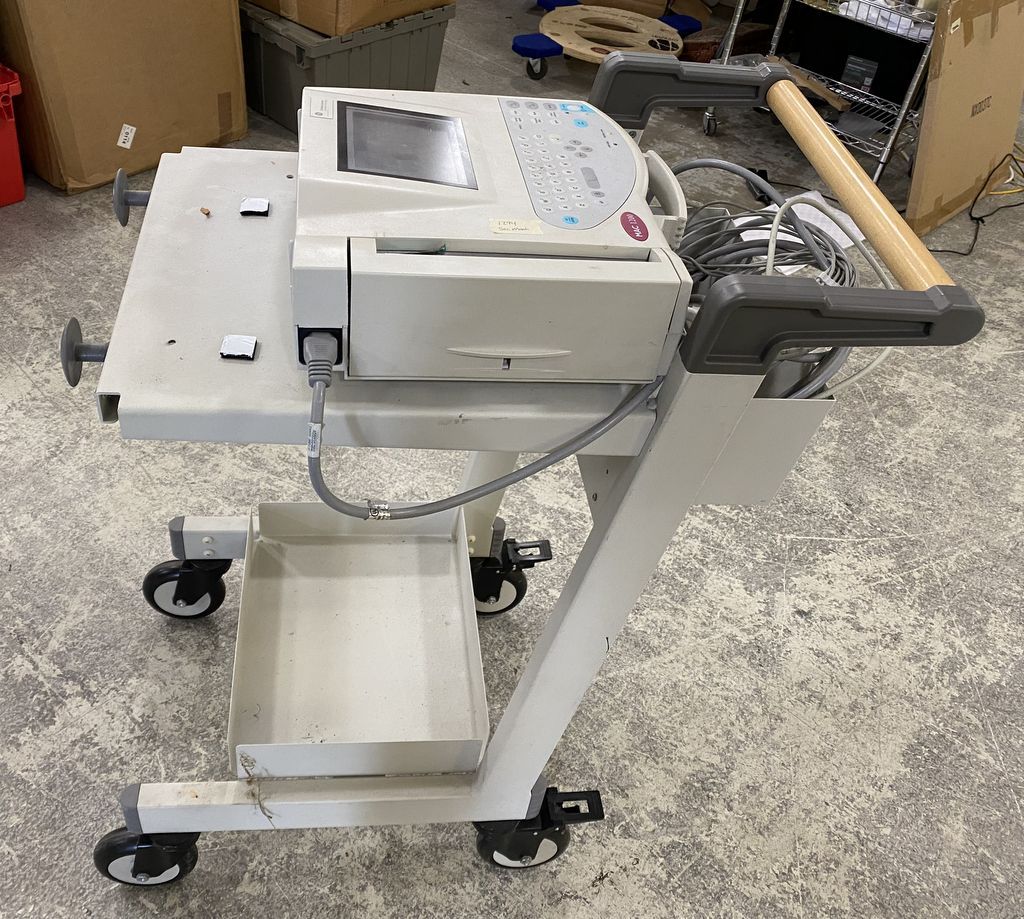 GE Mac 1200 EKG Machine, on cart, working condition. Location Left Office GE Mac 1200 EKG Machine, on cart, working condition. Location Left Office