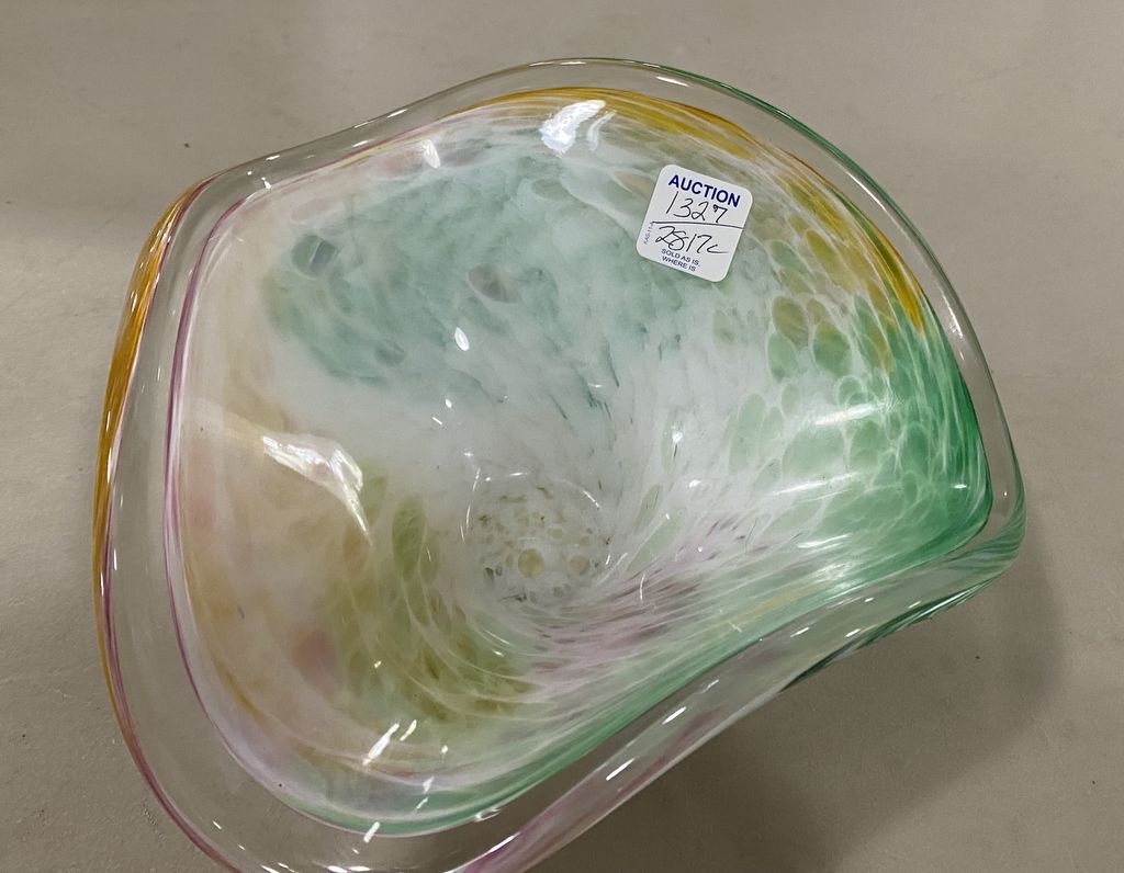 Hand Crafted Art Glass Bowl, Location Left Metal Shelves Hand Crafted Art Glass Bowl, Location Left Metal Shelves