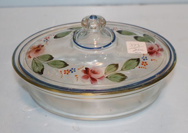 373 Clear Covered Casserole Dish with Hand Painted Lid