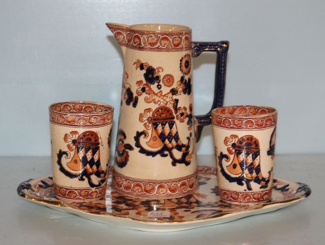 637 Imari Style Pitcher, Two Tumblers, Tray
