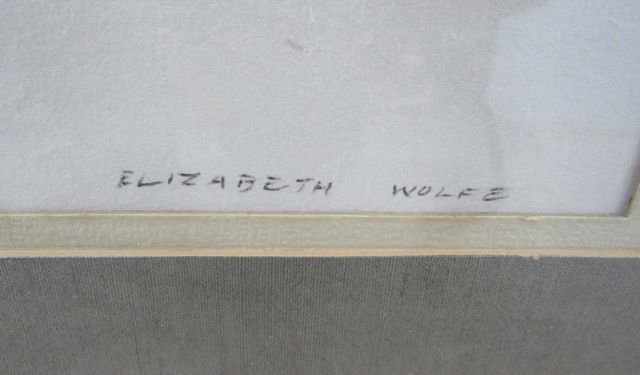 Elizabeth "Bebe" Wolfe Owner of Wolfe Studio Fine Art, daughter on Karl and Mildred Wolfe. Framed, matted, 13 1/2"h., x 16"w. Elizabeth "Bebe" Wolfe Owner of Wolfe Studio Fine Art, daughter on Karl and Mildred Wolfe. Framed, matted, 13 1/2"h., x 16"w.