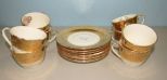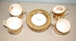 Royal China 22 KT. Gold rim, eight saucers (some gold is worn), eight cups (some gold is worn). Royal China 22 KT. Gold rim, eight saucers (some gold is worn), eight cups (some gold is worn).