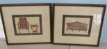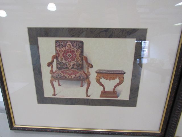 Framed, matted, reprints of 1905 artwork by Shirley, Arm chair, marble console, sofa., 17"h., 21"w. Framed, matted, reprints of 1905 artwork by Shirley, Arm chair, marble console, sofa., 17"h., 21"w.