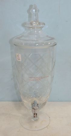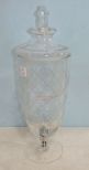 Clear etched glass dispenser, 19"h., 6"dia. Clear etched glass dispenser, 19"h., 6"dia.