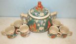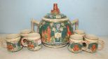 617 German Hand Painted Punch Bowl and Cups