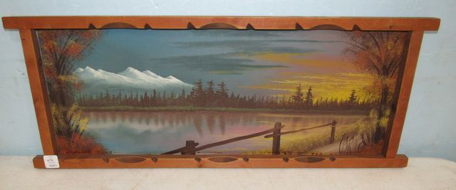 Wood framed, signed, 10"h., 27"w. Wood framed, signed, 10"h., 27"w.