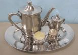 Serving tray 18"w., Water pitcher, sugar, creamer, small pitcher. Serving tray 18"w., Water pitcher, sugar, creamer, small pitcher.