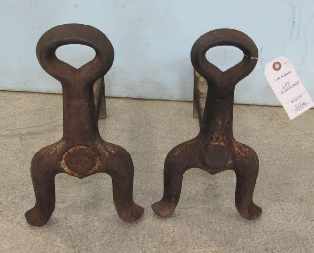Antique rustic pair of andirons, 14"h. Antique rustic pair of andirons, 14"h.