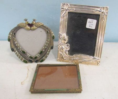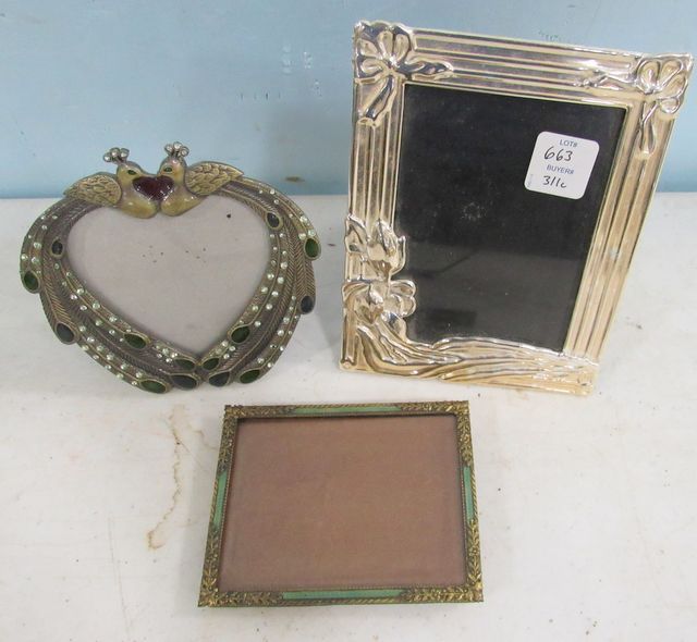 Peacock frame 4"h., sivler plate frame, brass frame. Peacock frame 4"h., sivler plate frame, brass frame.