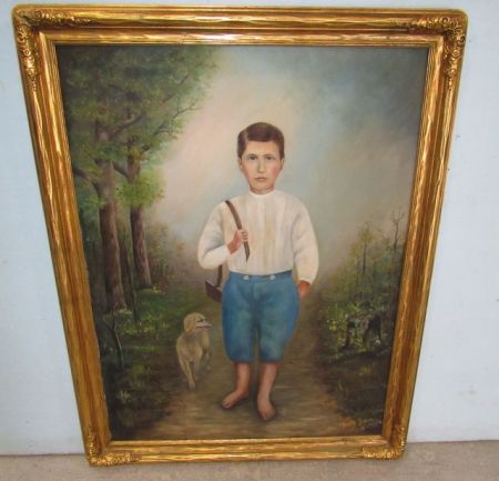 Oil on canvas, 1940s, gold framed, 46"h. 35"w. Oil on canvas, 1940s, gold framed, 46"h. 35"w.