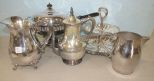 759 Silver Plate Warmer, Three Pitchers, and Two Tier Serving Dish