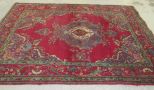 Needs cleaning, has wear on edges, dark red, teal, green, 9'8 x 6'10. Needs cleaning, has wear on edges, dark red, teal, green, 9'8 x 6'10.