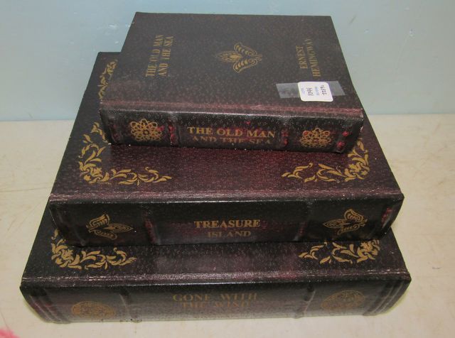 The books open for storage, The Old Man and The Sea, Treasure Island, Gone with the Wind. The books open for storage, The Old Man and The Sea, Treasure Island, Gone with the Wind.