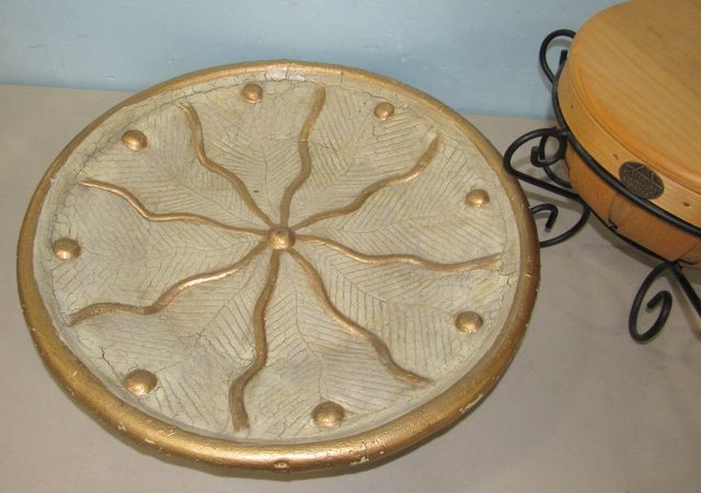 1105 Mdoern Painted Ceramic Charger and Basket on Stand
