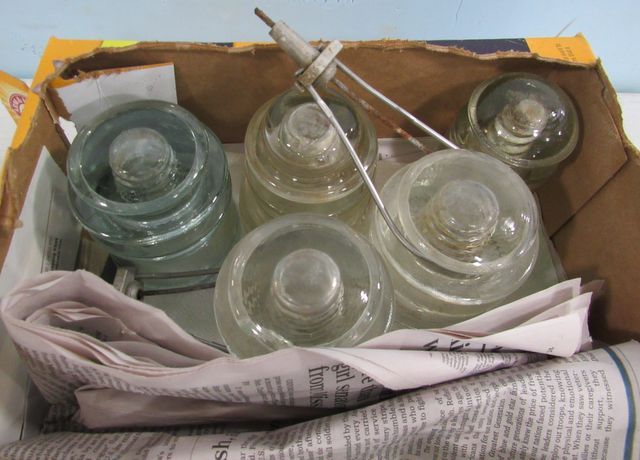 1204 Five Glass Insulators and Twelve Glass Salt & Pepper Shakers