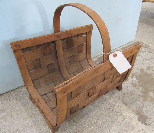 Split oak handled basket, 17"h., 14"w. Split oak handled basket, 17"h., 14"w.