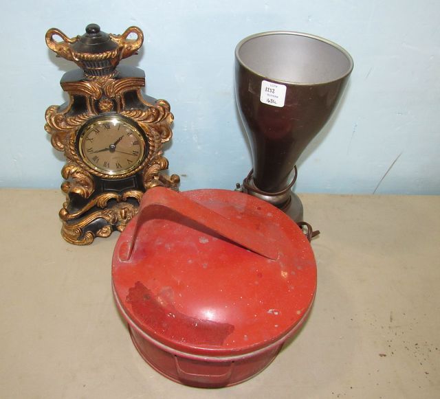 1232 Black & Gold Resin Mantle Clock, Spotlight Lamp, Red Metal Washing Canister