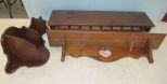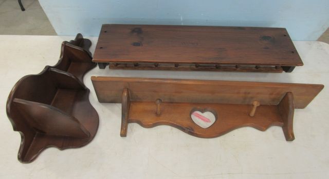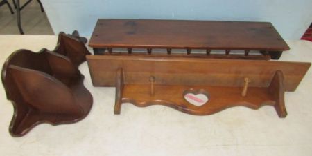Stained wood display shelf, wood coat rack, cherry corner display 22"h. Stained wood display shelf, wood coat rack, cherry corner display 22"h.