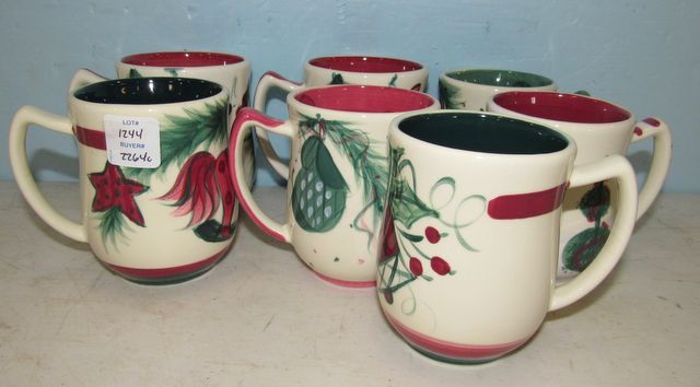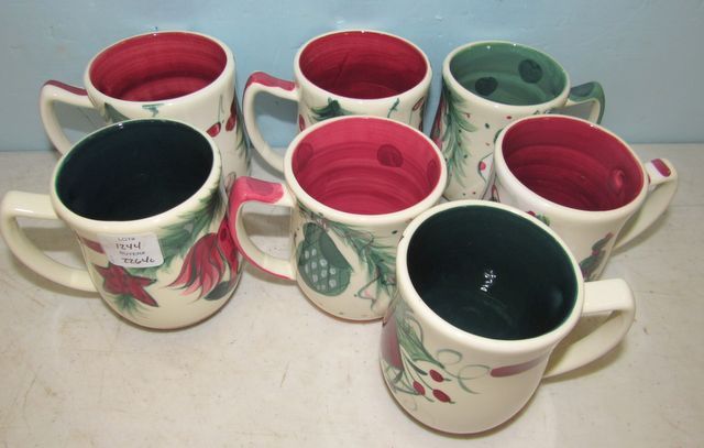 Hand painted 1990s Gail Pittman mugs, 4"h. Hand painted 1990s Gail Pittman mugs, 4"h.