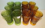 White Hall amber & green cups, cube pattern, 6"h. White Hall amber & green cups, cube pattern, 6"h.